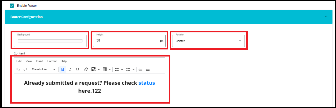 • Add the text to the content field if you want any text to be displayed on the footer.