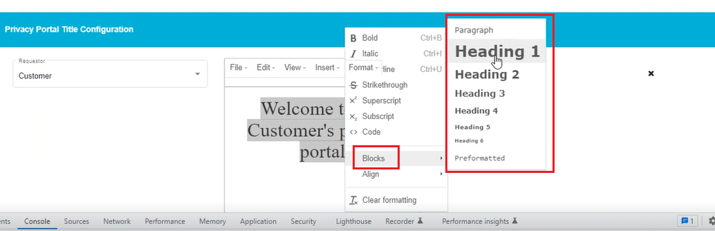 Note: The configurations made under Welcome Page Configuration apply to the entire text displayed on the Privacy Portal welcome screen by default. These settings can be overridden at the individual level if specific styles are defined under Header, Title, or Subtitle sections.